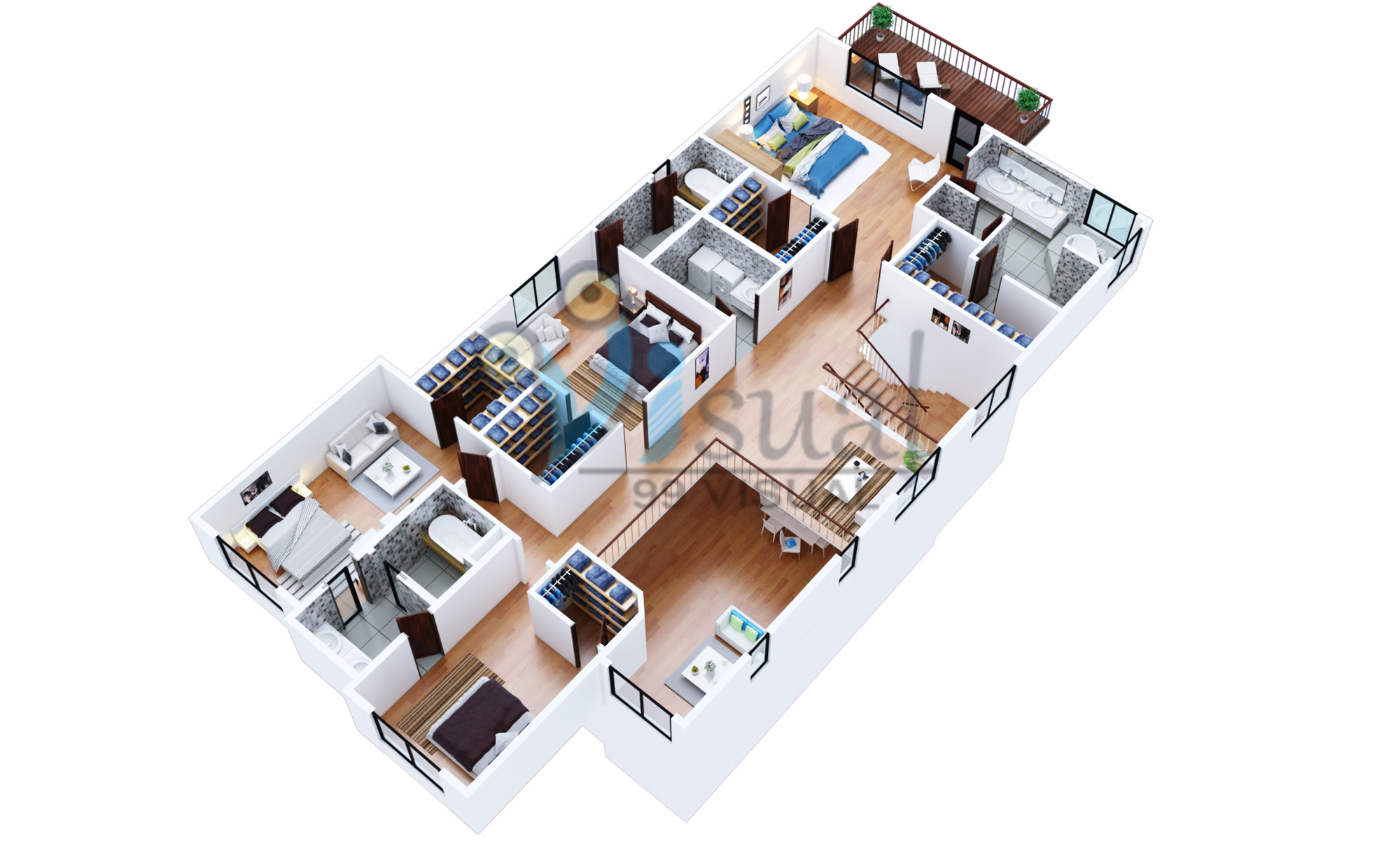 We specialize in developing 3D floor plan units for Residential (apartments, houses, etc.) and Commercial setups. We assist our clients in transforming their 2D CAD plans into realistic 3D floor plans with meticulous furniture placements, fixtures, flooring and many other props that give the floor plan a creative edge.